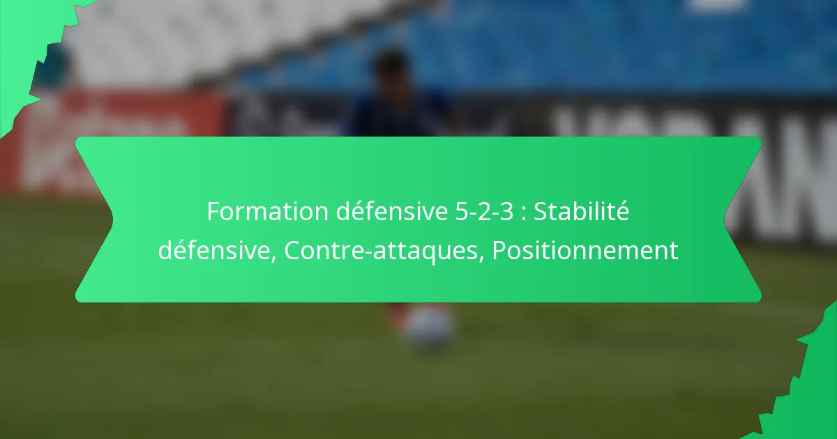 La formation défensive 5-2-3 est une configuration tactique au football qui met l’accent sur la stabilité défensive tout en permettant des contre-attaques rapides. Cette formation comprend cinq défenseurs, deux milieux de terrain et trois attaquants, fournissant une ligne défensive solide et des options pour des transitions rapides vers l’attaque.