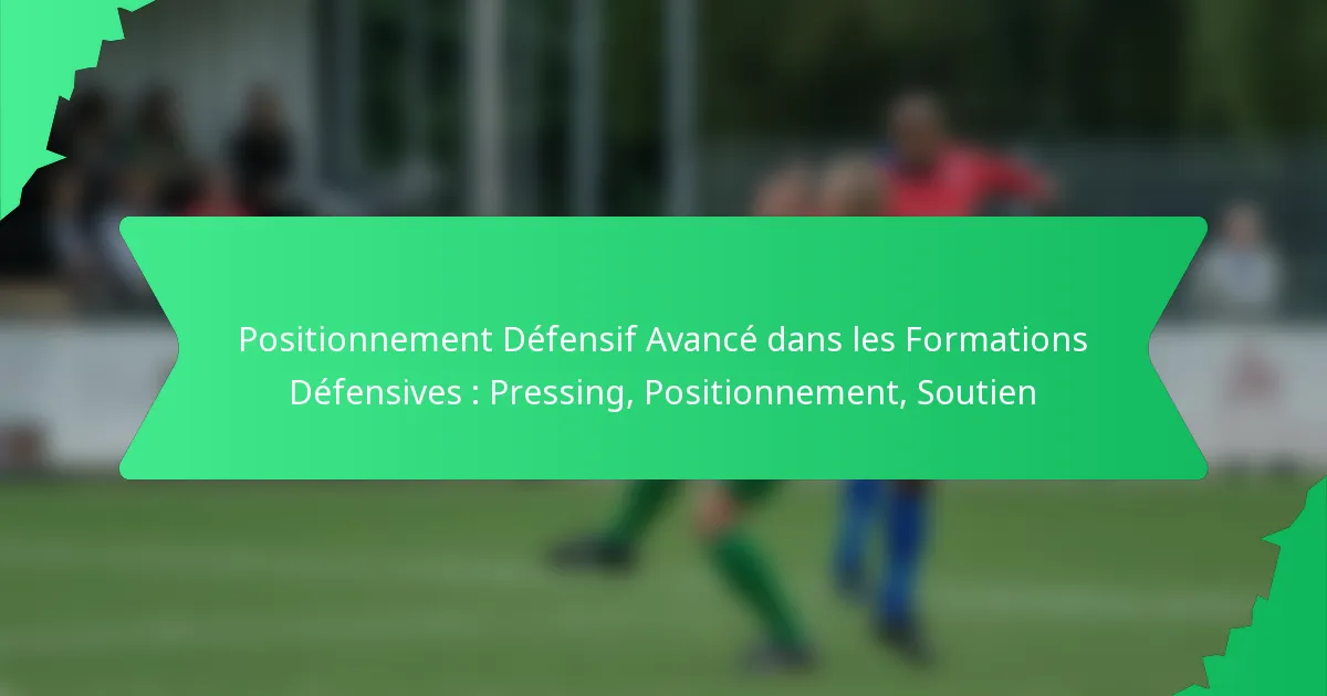 Le positionnement défensif des attaquants est essentiel pour perturber l’attaque d’un adversaire tout en renforçant le cadre défensif d’une équipe. En plaçant stratégiquement des joueurs sur la ligne d’attaque, les équipes peuvent exercer une pression, récupérer la possession et maintenir leur structure. Des tactiques de pressing efficaces et des techniques de positionnement améliorent l’efficacité défensive, permettant aux joueurs d’anticiper les mouvements et de communiquer efficacement avec leurs coéquipiers.