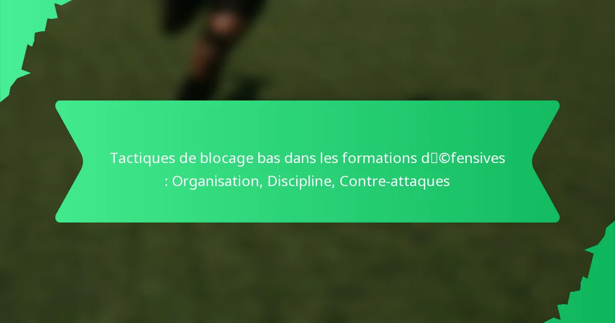 Les tactiques de bloc bas dans les formations défensives consistent à positionner les joueurs profondément dans leur moitié de terrain pour restreindre les options d’attaque de l’adversaire. Cette stratégie repose sur une organisation et une discipline solides, permettant aux équipes d’absorber la pression tout en restant prêtes à exploiter les opportunités de contre-attaque. En maintenant une compacité et des rôles clairs, les équipes peuvent défendre efficacement contre les menaces et passer rapidement à des actions offensives lorsque le moment se présente.