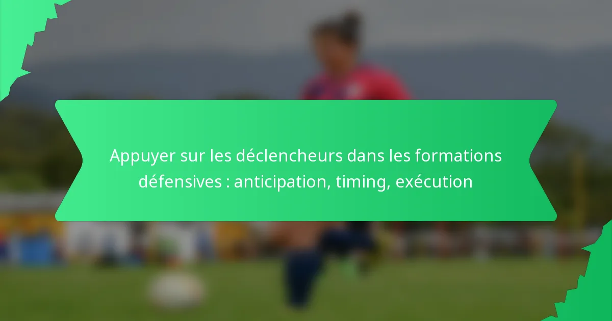 Les déclencheurs de pressing dans les formations défensives sont des signaux vitaux qui indiquent à une équipe de lancer une action de pressing coordonnée contre ses adversaires. Maîtriser l’anticipation et le timing de ces déclencheurs permet aux joueurs de perturber efficacement le jeu de construction de l’adversaire et de récupérer la possession, améliorant ainsi la stratégie défensive globale.