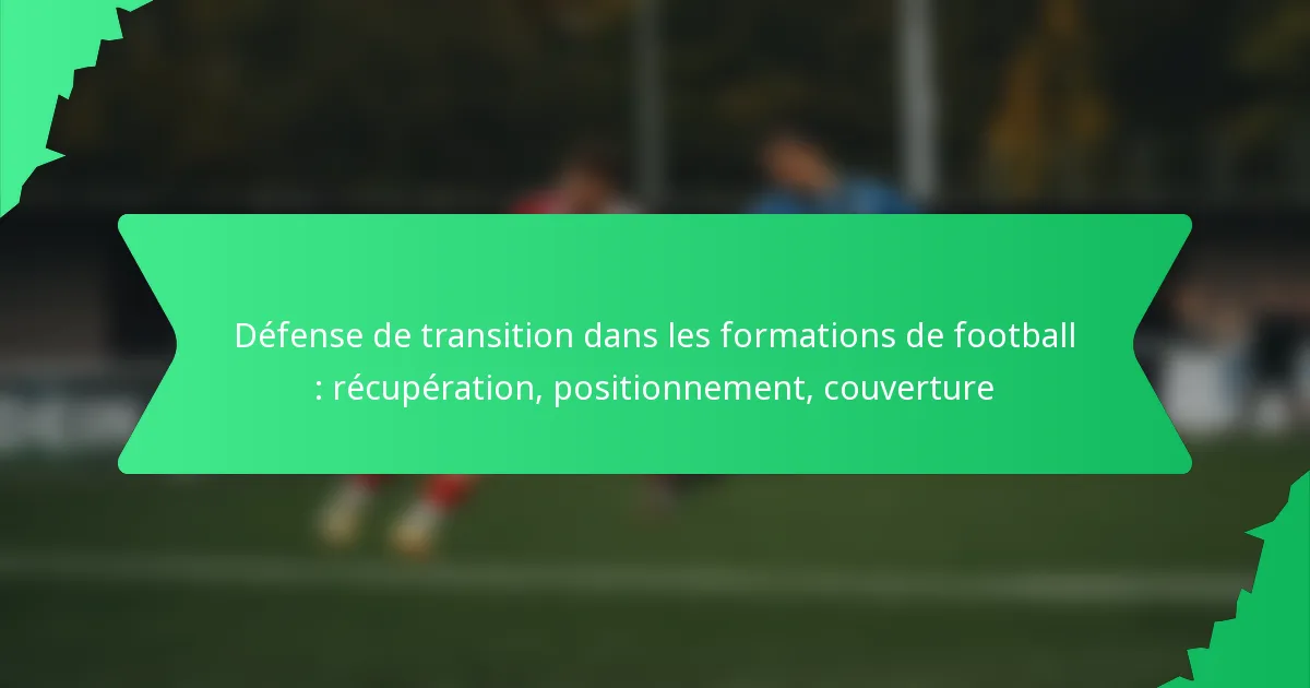 La défense en transition dans les formations de football est essentielle pour retrouver rapidement une organisation défensive après une perte de balle. Cette stratégie met l’accent sur la récupération, le positionnement et la couverture pour minimiser les opportunités de marquer pour les adversaires lors de moments critiques. En se repositionnant rapidement et en communiquant, les équipes peuvent efficacement contrer les attaques et maintenir l’intégrité défensive.